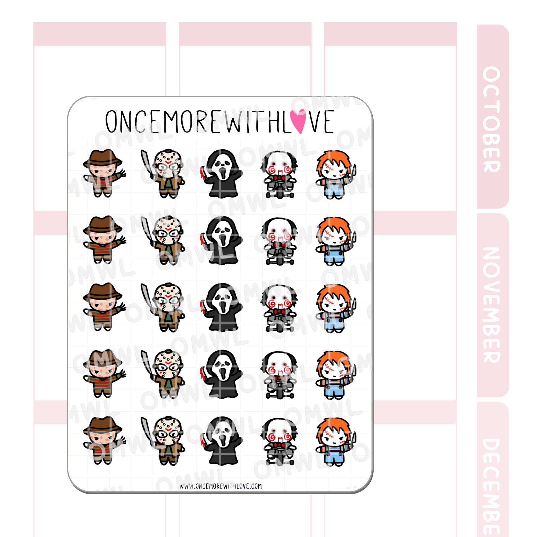 These are awesome stickers to add to your planner during the month of October. They're a good conversation starter as well when people see them in your planner! I love the mini Jason and Freddy ones. :)