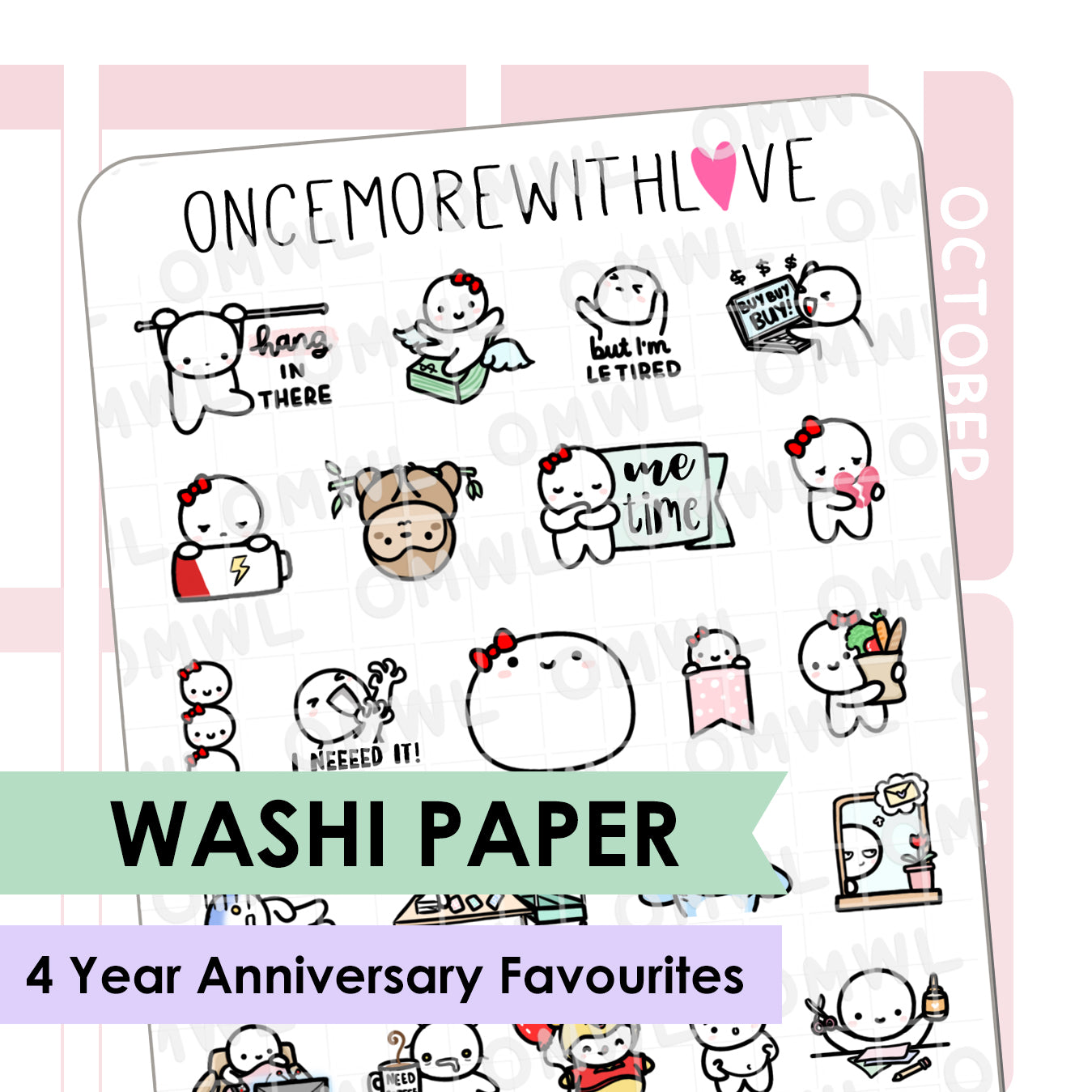 One sheet of our favourite stickers which were released in OnceMoreWithLove's fourth year - and now we have it in washi paper format!