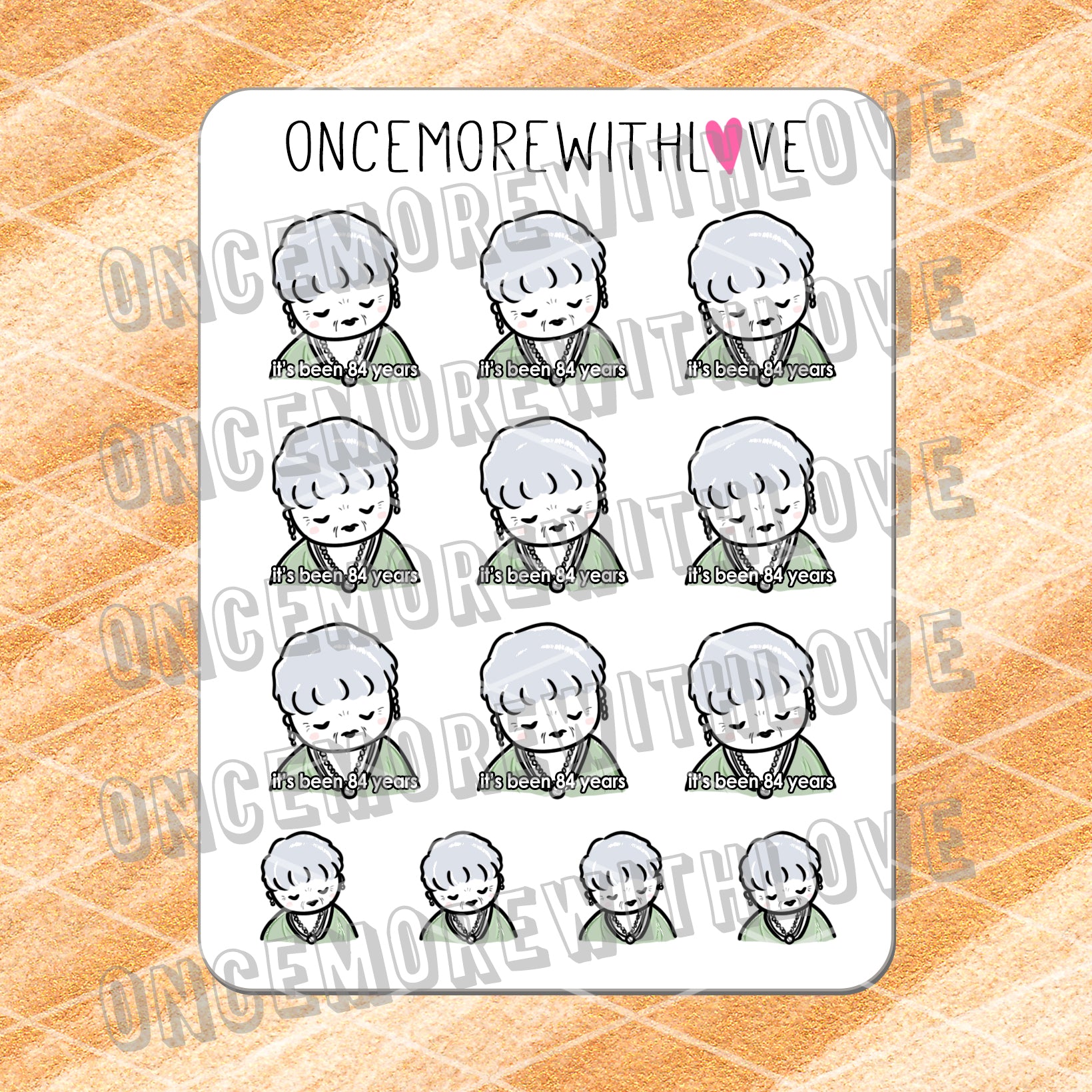 I can be real slow sometimes... like 84 years slow... so these stickers are perfect for me when I am. They are also great for waiting for happy mail and it feels like it's been 84 years! Or a super long day that you just can't wait to get over. Hope these help to make the time pass quicker!
