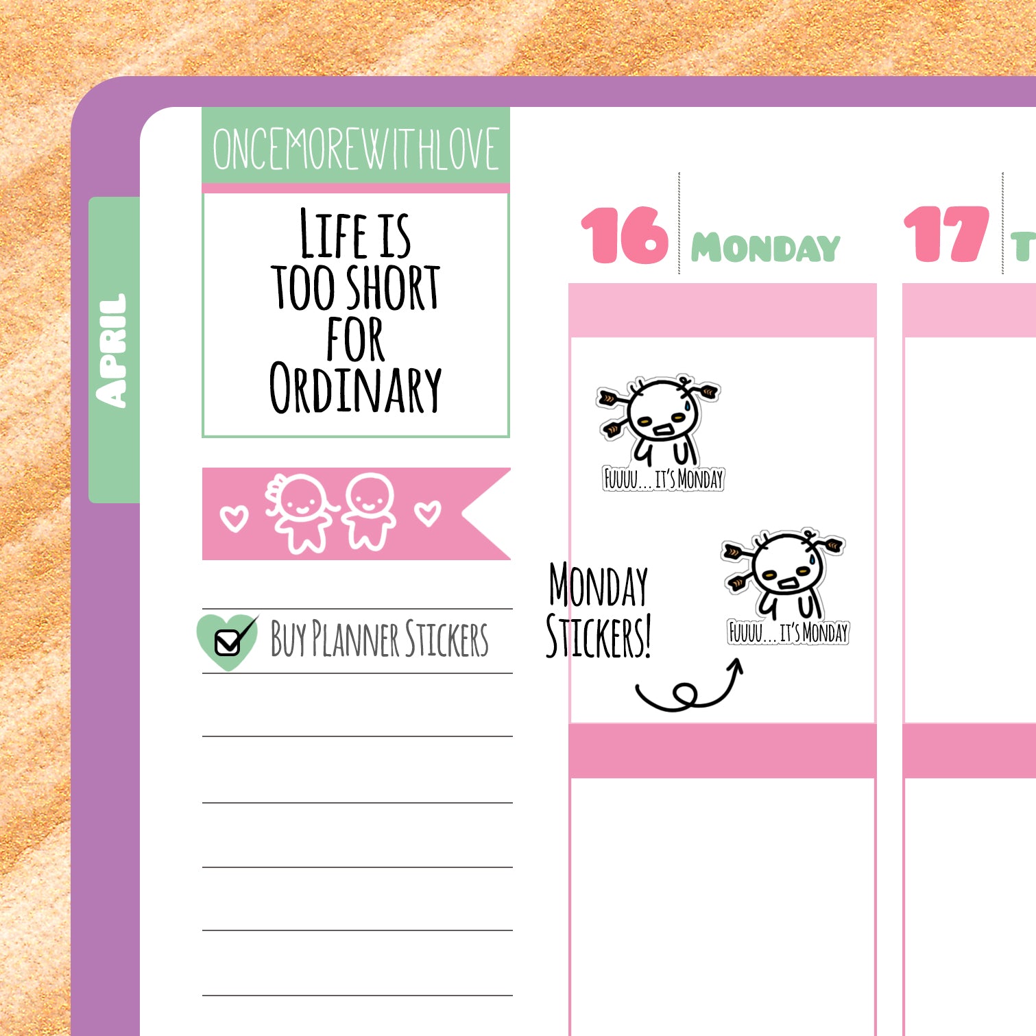 I LOVE OnceMoreWithLove - not just the adorable stickers and planner accessories, but the brand and what it stands for. Munchkins are so cute, and there's a sticker for every event, mood, hobby... just about everything imaginable. The thing I love most is how even though OMWL is such a big, well known shop within the planning community, all those little things that make small businesses so special remain. I use planning to help keep me organised, but also to help with my anxiety, and seeing all the cute little stickers in my journal makes me smile, even on a rough day.