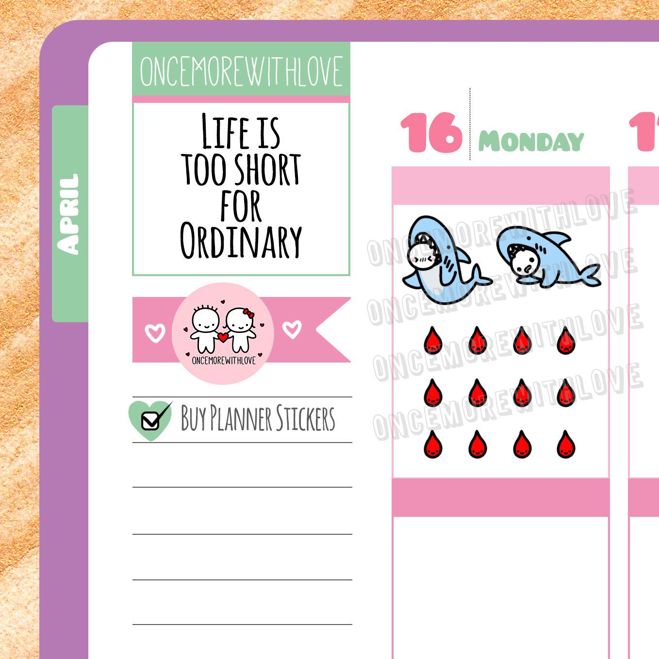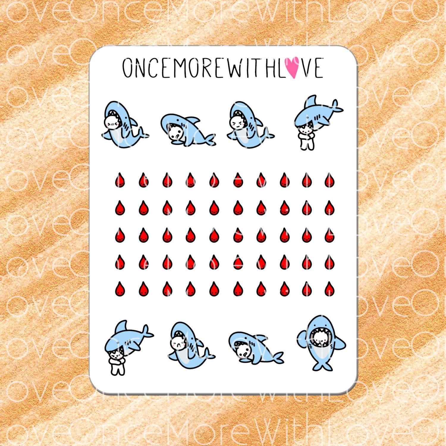 M63 - Shark Week Period Tracker Munchkin Planner Stickers