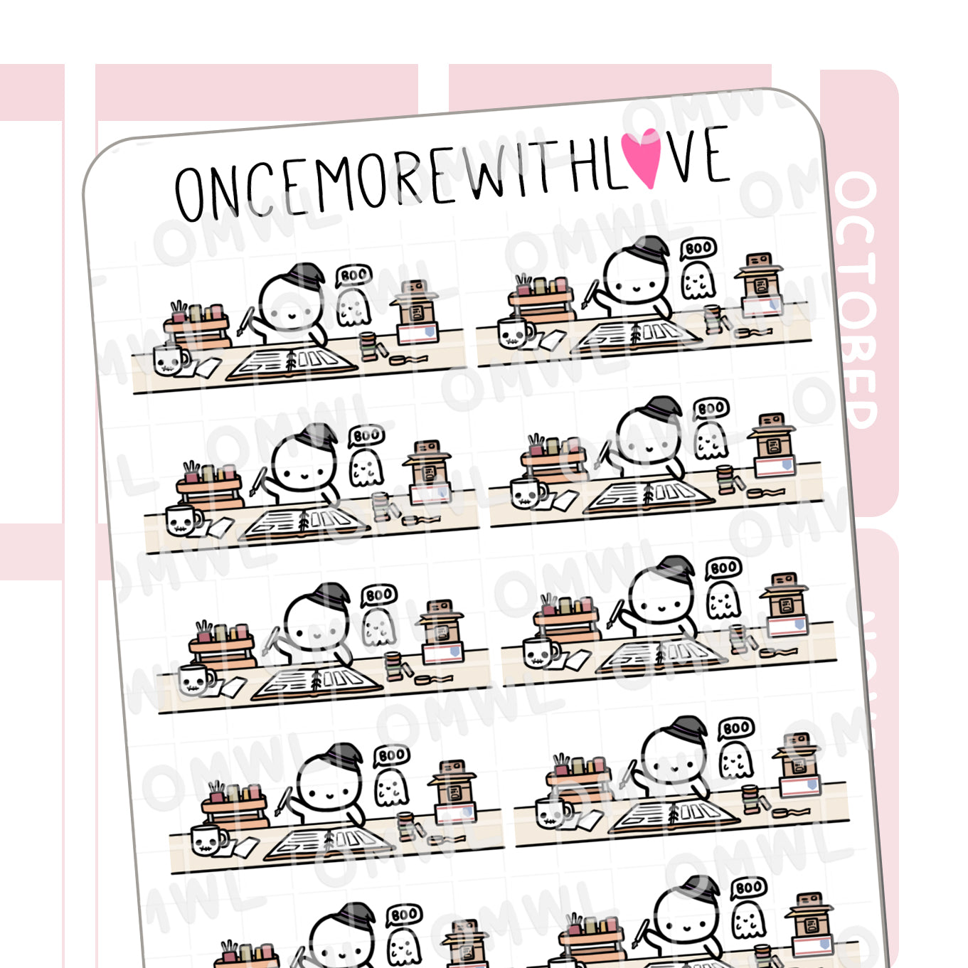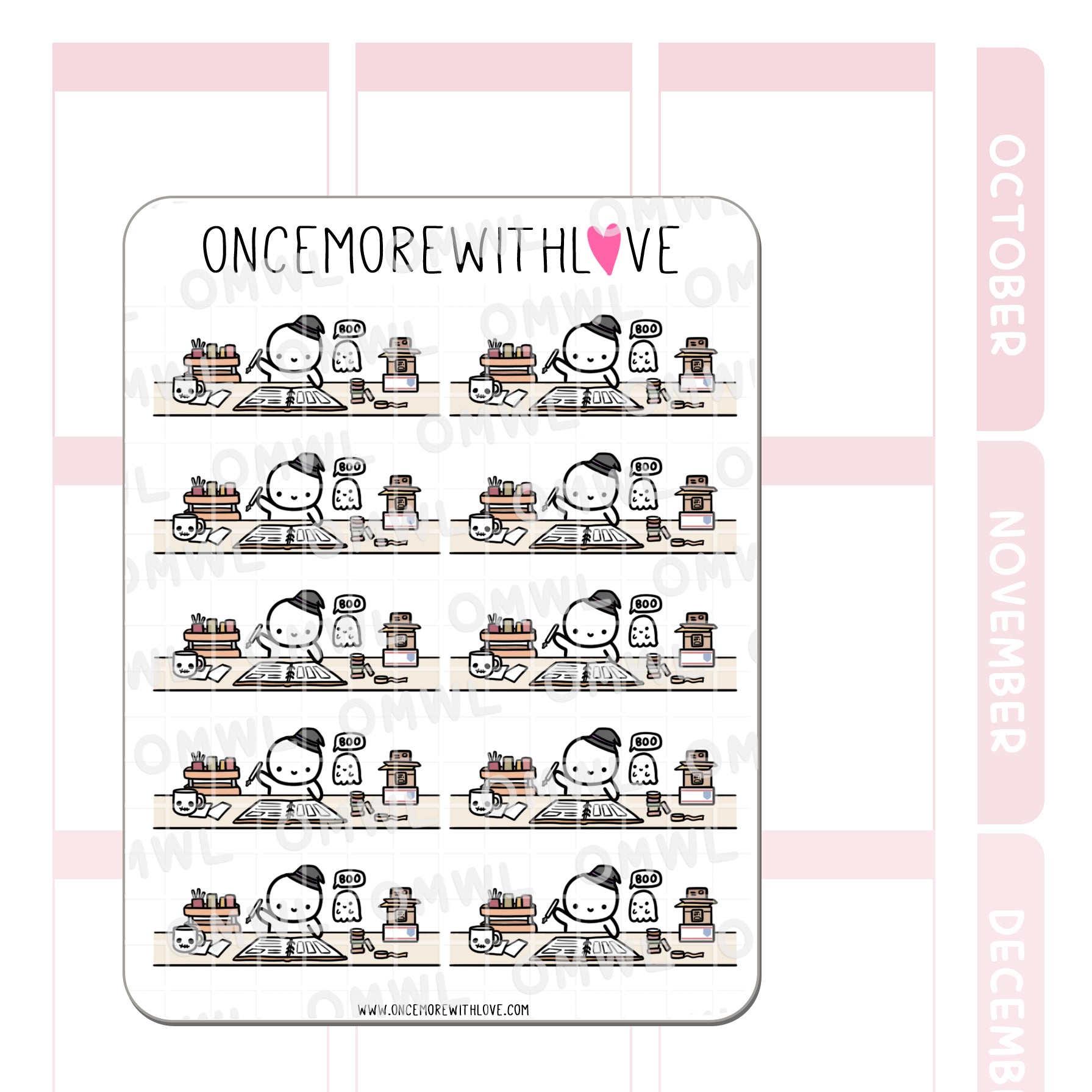 Perfect little planning scene with such adorable details. Love the little ghost friend and the mug slays me! Loved it so much I had to get another sheet.