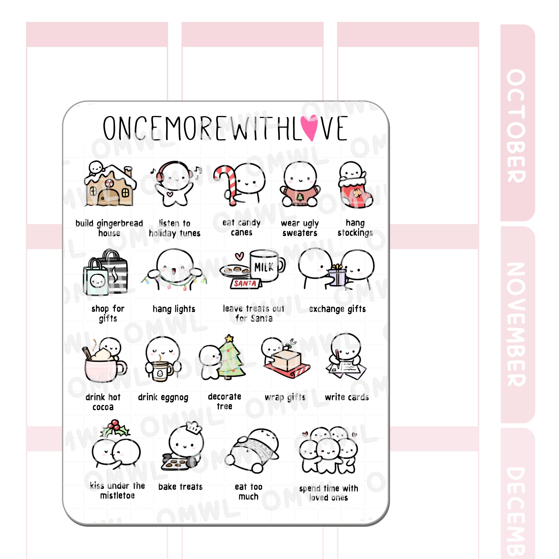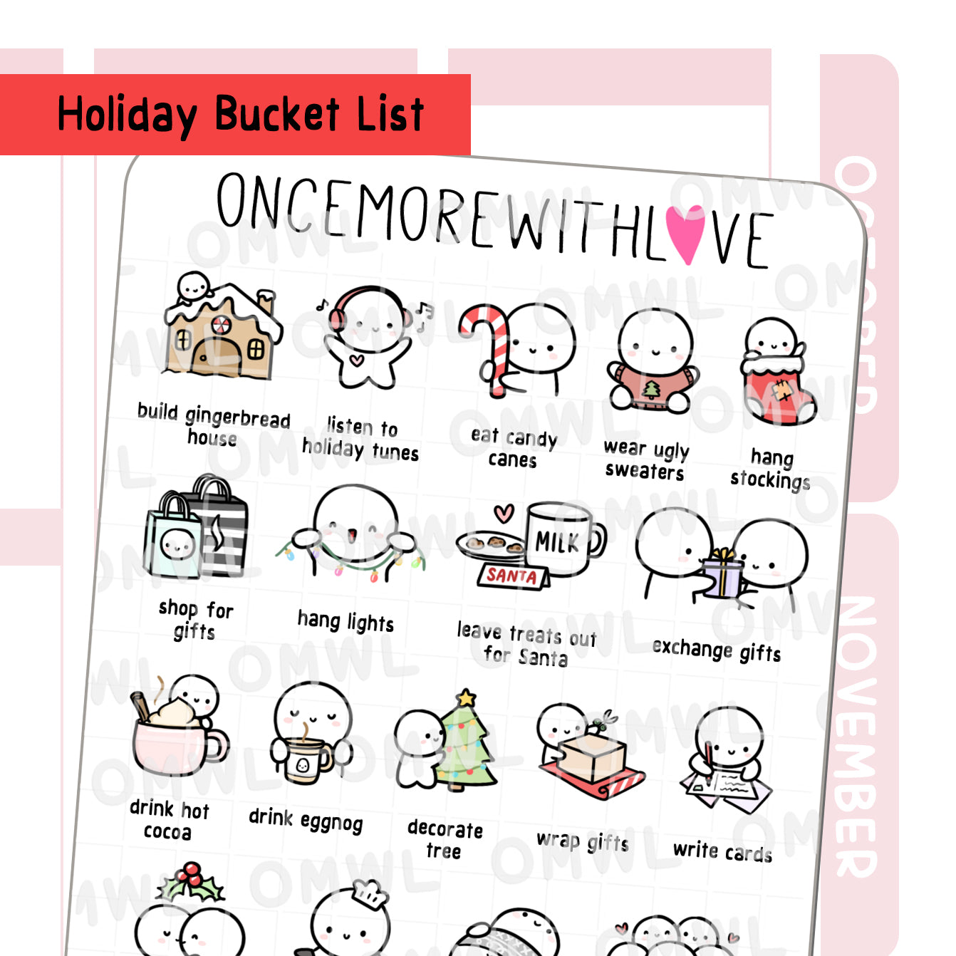 A complete bucket list for all the fun things you can do during the Christmas holidays! From building gingerbread houses, to leaving treats out for Santa, to spending time with loved ones... these munchkins are there to celebrate every special moment with you!
