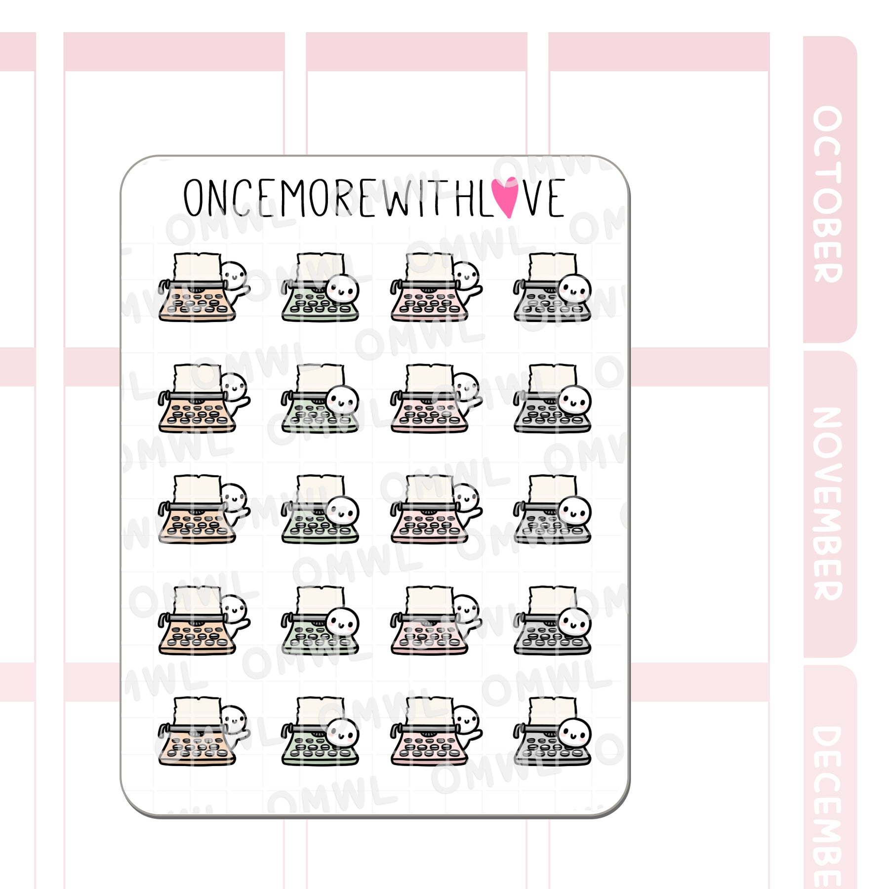 Cozy typewriter munchkin stickers perfect for planning, journaling, pen pal, writing sessions, or creative time!