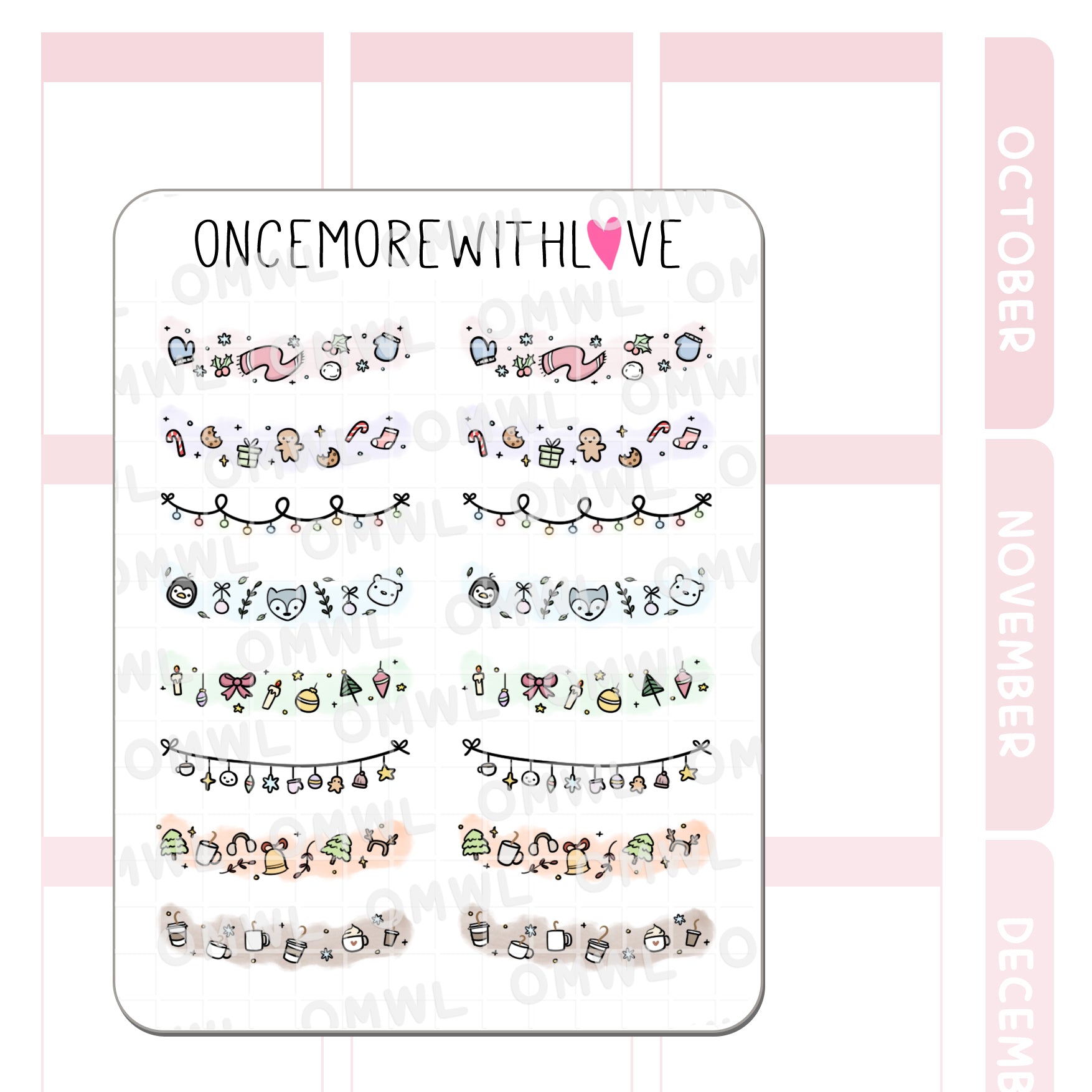 I love that these are so festive, but offer a lot more than just the standard red/green santa/gift motif!! I don't use a lot of the traditional Christmas colors in my spreads, so I love having these options to dress up my planner and break up sections in my journal.
